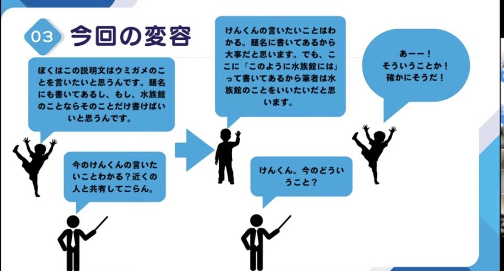 - 理想は、「教師が間に入らなくても、子供たちが自ら考えをつなげ、深めていける授業」です。今回の学びを糧に、今後も「子供に委ねる勇気」を持って、研究を続けていきたいと思います。