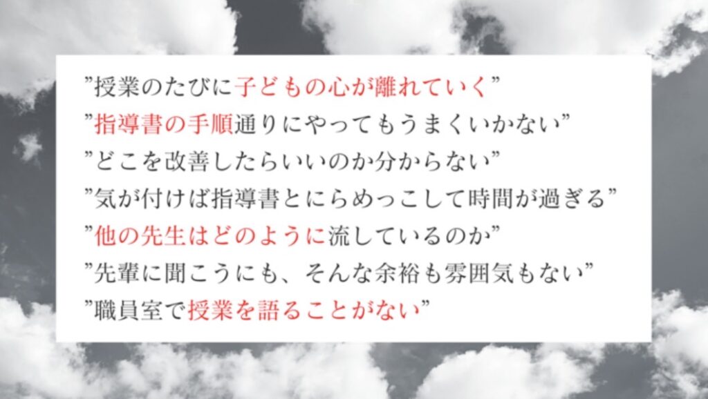 指導書や教育書といった書物でしか授業を学べない状況や、「めあてとまとめ」に代表されるような形式的な制約が多いなかでは、