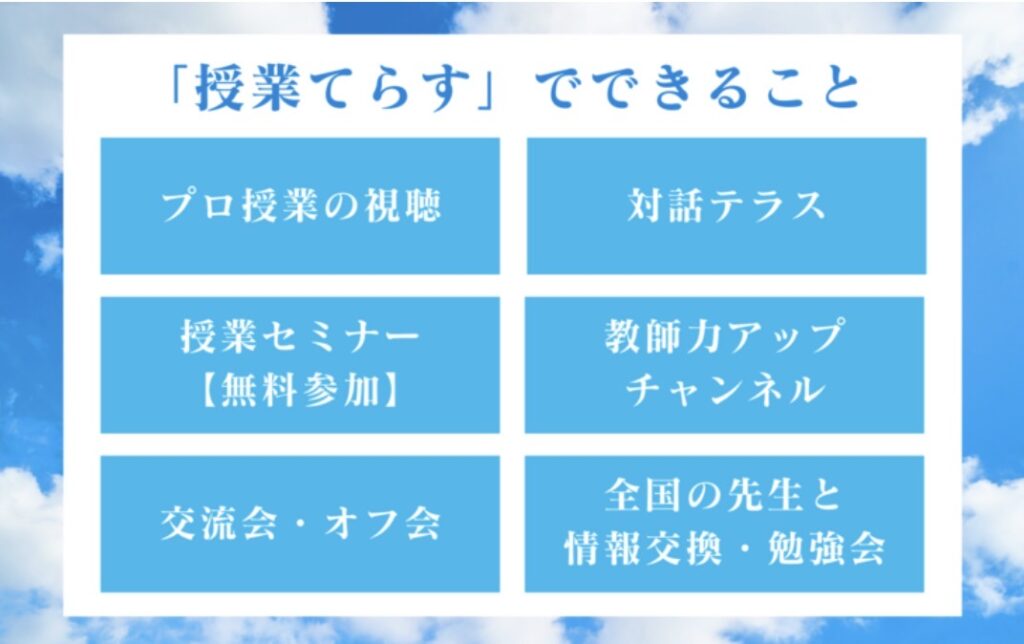 授業てらすは、「授業がうまくなりたい」という先生の声から生まれた「授業コミュニティ」です。