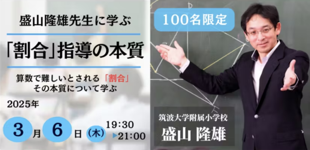 日本の算数教育を牽引する盛山先生。理論と経験に裏打ちされた算数的な力を伸ばす指導と、「算数って楽しい」「もっとやってみたい」と子どもの心を動かす授業は、多くの先生の目標となっています。