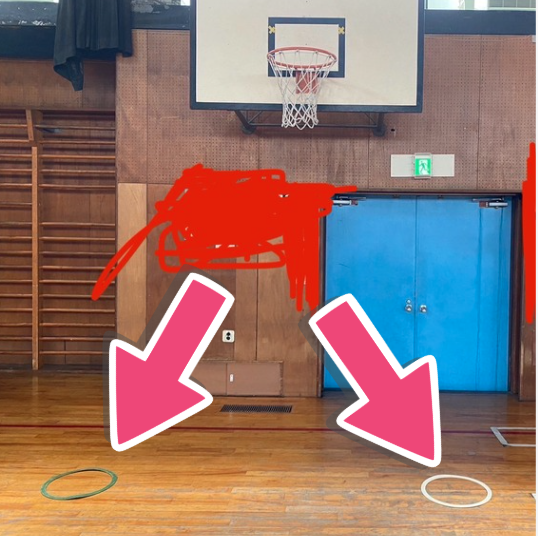 「バスケットゴールは遠くて私にはできない」と苦手な子がいっぱい言ったので、「じゃあどうしたらいいかな」っていろんな提案が出たんですけど、私のクラスの場合はこれが1番しっくり来ました。